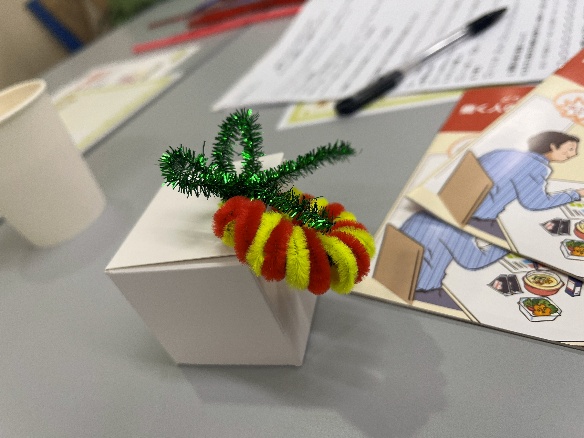 12月ひだまり。参加者は26名でした。第1部は管理栄養士の平澤さんが「食事から考える動脈硬化予防」の講義を行いました。第2部は「作って贈って!ひだまりクリスマス会」を行い、参加者の皆さんも楽しんで参加していただきました。来月は第1部の講義を副院長の吉玉先生による「高血圧に気をつけよう」を、第2部では「願いを込めたミニダルマ作り」を予定しています。ご参加お待ちしております。