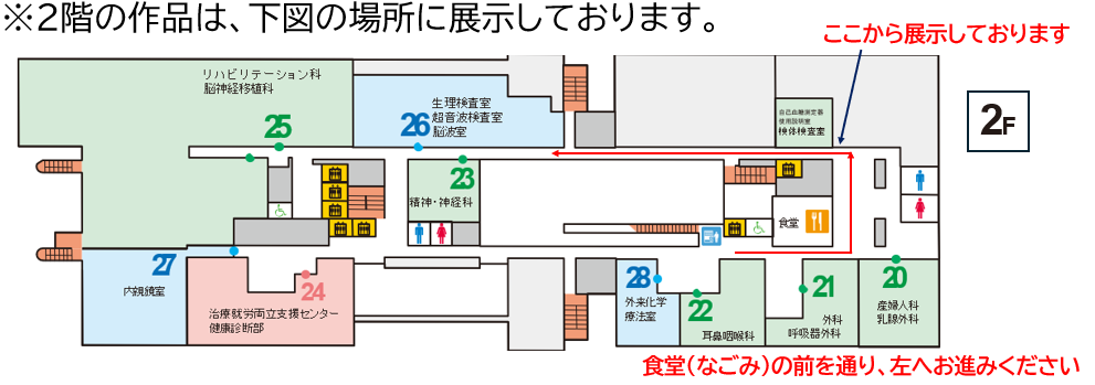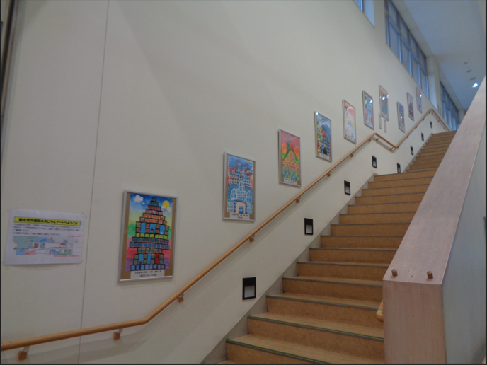 大森第四小学校、大森第一中学校の生徒さんが新たに制作した絵画、鉛筆デッサンを展示しております。作品は、1階総合受付前の階段壁面、2階に展示しておりますので、是非ご鑑賞ください。