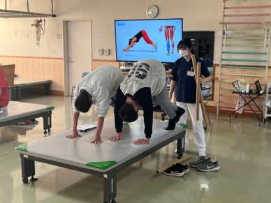 広報期間が短かったこともあり参加人数は少数でしたが、参加者一人ひとりに対して、整形外科医師によるスポーツ障害の説明と、理学療法士によるフィジカルアセスメントおよび障害予防を目的としたストレッチ指導を手厚く行うことができました。