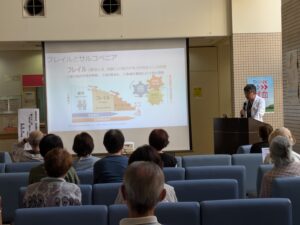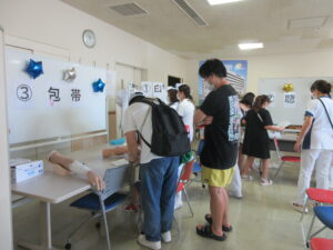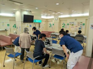 9月6日(土)「病院見学会」を開催しました。今回は7年ぶり、初の他施設とのコラボで開催しました。ヘリポート見学、看護師体験、手術室見学、森田院長と三品脳神経内科部長による「特別講演会」等といった普段体験することのできない病院についてのブースを設けました。当日は約250人の方々が訪れ皆様には満足していただきました。